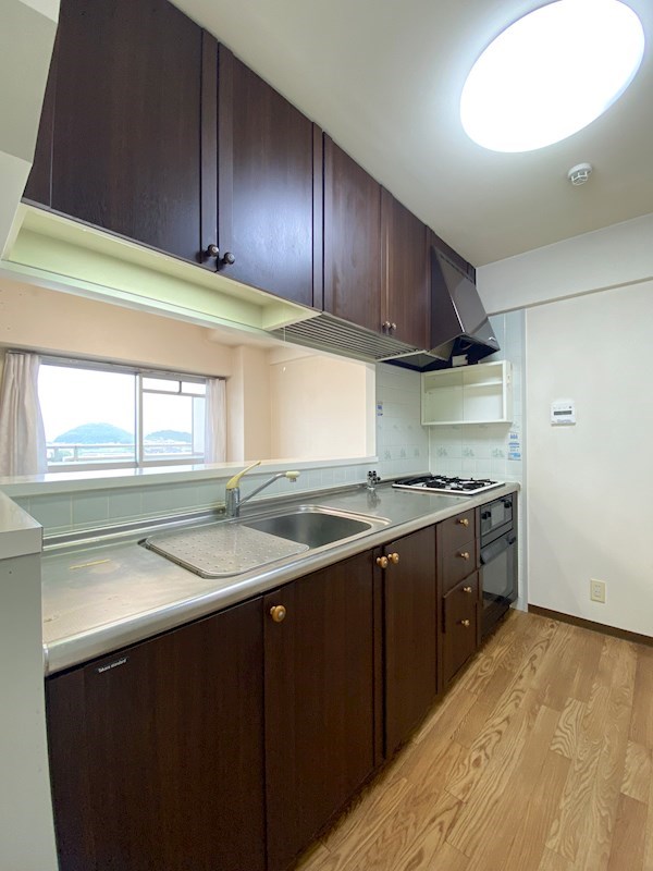 水道:公営/ガス:都市ガス/排水:下水/専用バス/バス・トイレ・洗面セパレート/ガスコンロ付き/三口コンロ/システムキッチン/ガス給湯/シャンプー・ドレッサー付洗面台/エレベータ/バルコニー/フローリング/TVモニター付インターホン/ウォシュレット/カウンターキッチン/コンビニ近/電気有り
