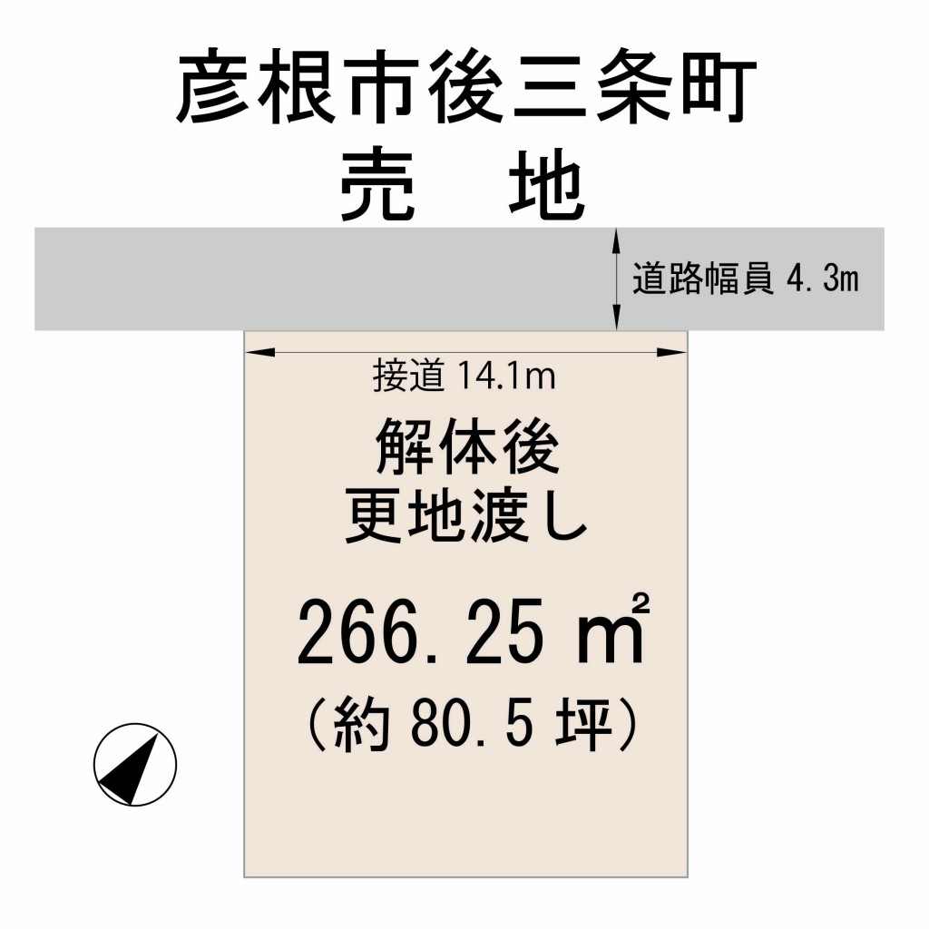 - 建物解体後更地渡し。