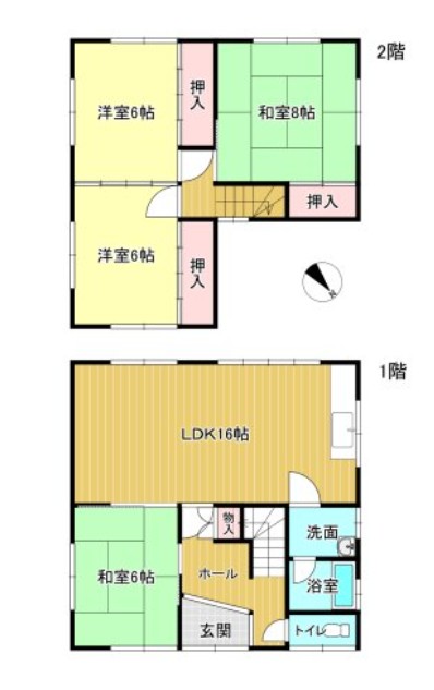 4LDK (1階和室6畳、2階和室8畳、2階洋室6畳×2)